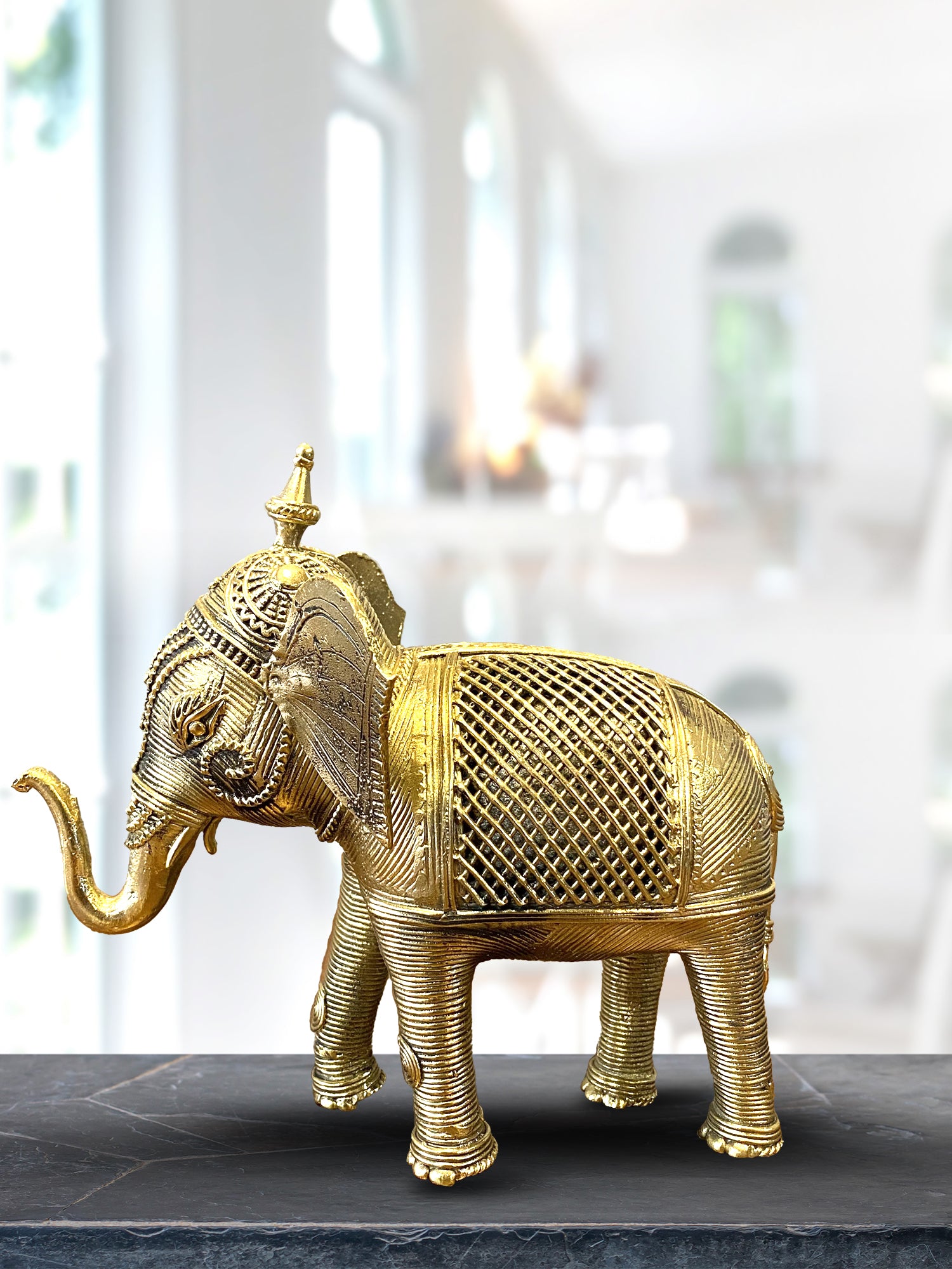 Add a touch of tradition to your home decor with this beautifully handcrafted "Brass Dokra Elephant Momento".